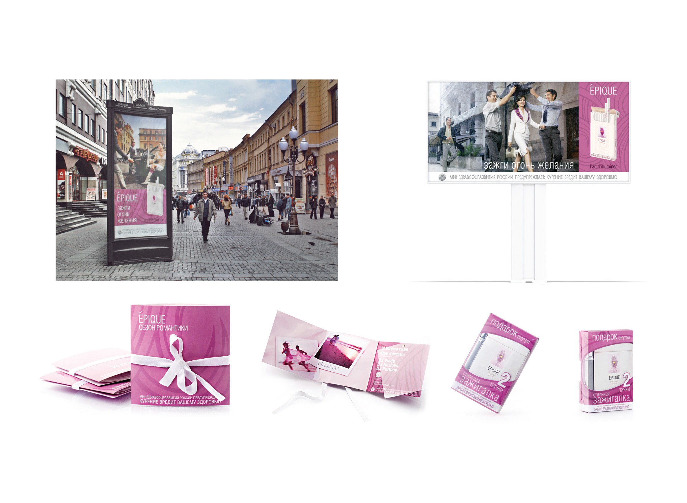 As part of this project, I supervised communications with Japan Tobacco International, working in a team with JTI brand managers Sergey Ganin, Natalia Rakova, and Natalia Maximenko. At first, I was engaged in the design of advertising materials for the Lucia and Epique brands, and as the project grew, I switched to managerial tasks. The project became the starting point of Aero's growth and helped the agency become a leader in the design market.